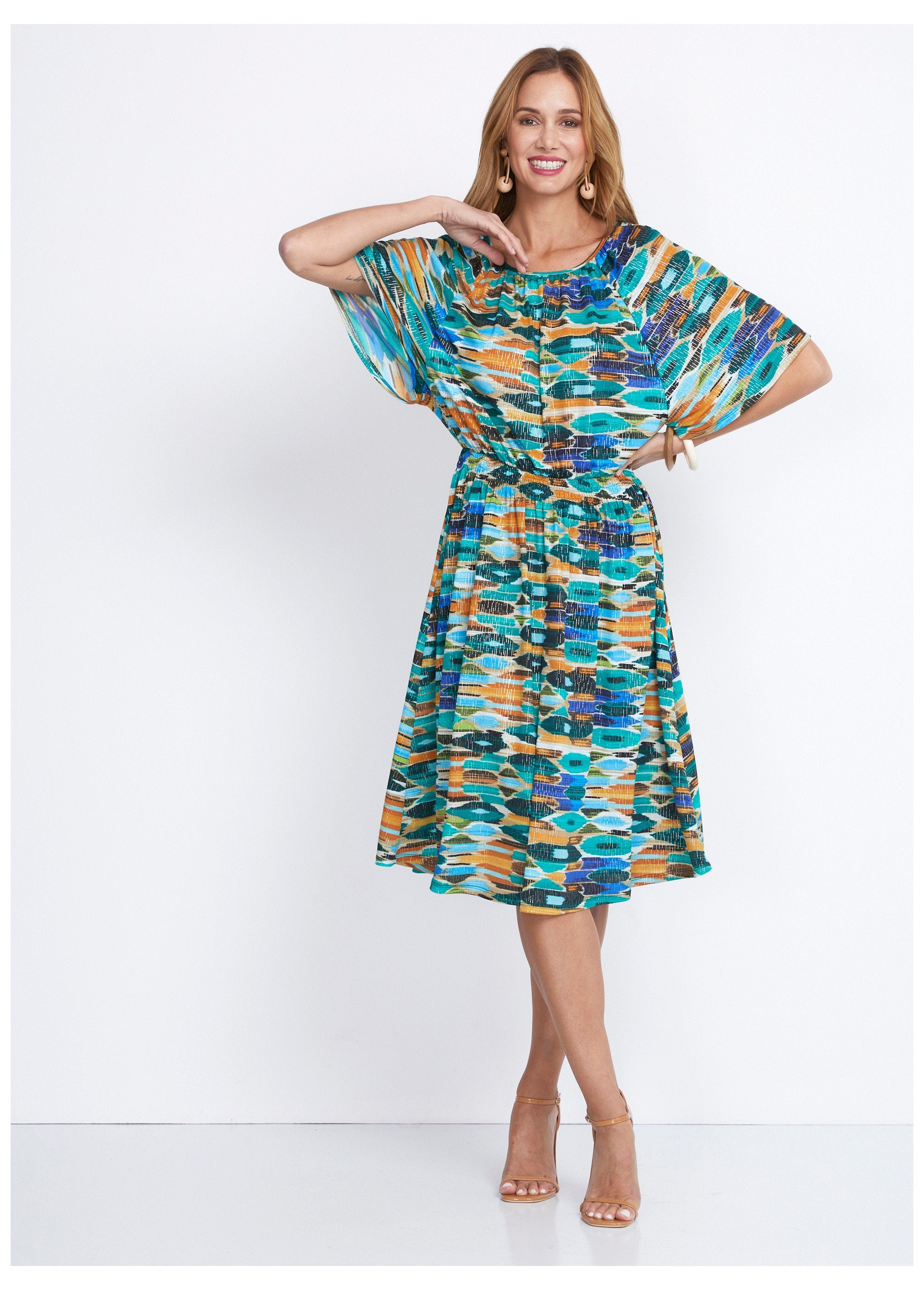 Suitable for all body types, its raglan volume enhances the bust and its dancing line slims the silhouette. It's the dress for a summer full of comfort and seduction. If you like its print brightened up with shiny details, you'll also like the CADEN t-shirt.