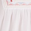 Always cool, the tunic ensures an increased style and comfort rating in all circumstances. Its open V-shaped round collar at the front is highlighted with an embroidered bib. Gathers under the bib ensure a nice fullness. Bias at the back neckline. Short sleeves. Straight base.